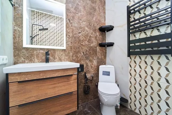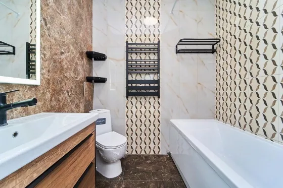 Развитая инфраструктура: фитнес клуб премиум класса на территории, торговые центры , супермаркеты , магазины , аптеки, прогулочные зоны, двор оборудован детскими и спортивными площадками, фонтан, подземный и наземный паркинги, консьерж и охрана , камеры видеонаблюдения.