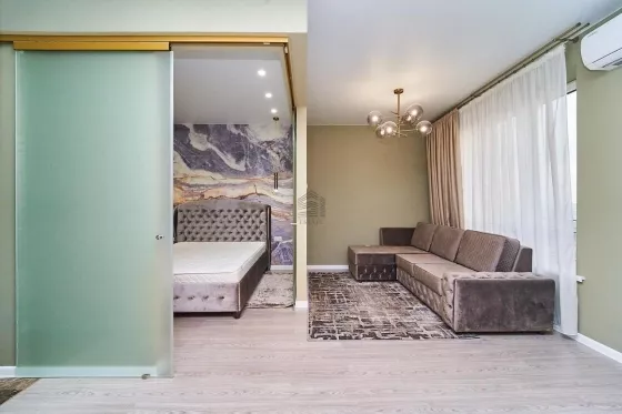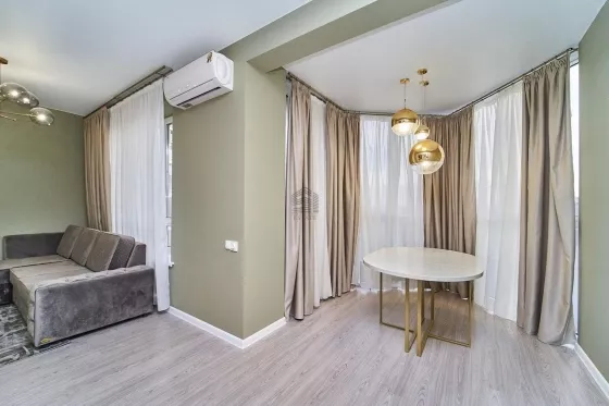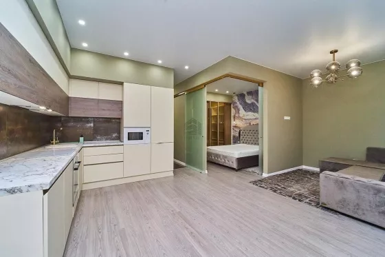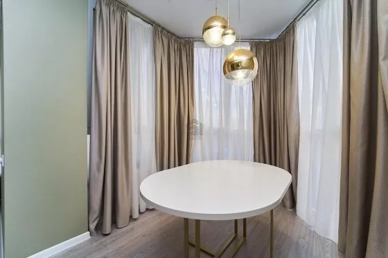 Квартира находится на 16 этаже . Из окон открываются потрясающие виды.Планировка: общ. S= 49,8 м, выделенная спальня и кухня-гостиная, просторная витражная лоджия .