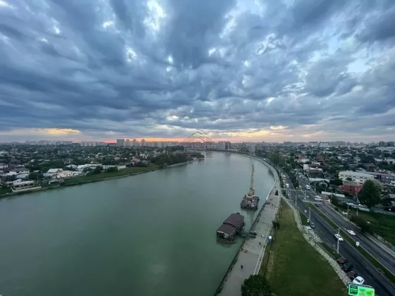 Квартира находится на 15 этаже . Из окон открываются потрясающие виды на историческую часть города и реку Кубань.Планировка: общ. S=105 м, 2 спальни и кухня-гостиная, 2 с/у, две лоджии . Высота потолков 3 м.Вид на Кубань! Витражное остекление