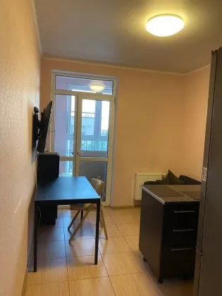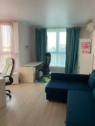 Квартира находится на 5 этаже . Из окон открываются потрясающие виды на историческую часть города. Планировка: общ. S=45 м, спальня и кухня-гостиная, с/у, просторная витражная лоджия .
