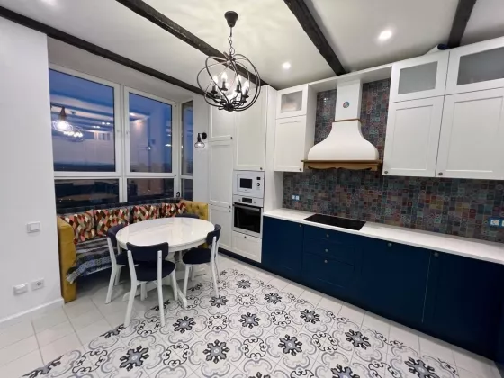 - Встроенная бытовая техника (посудомоечная машина, индукционная варочная панель, духовой шкаф, микроволновая печь)