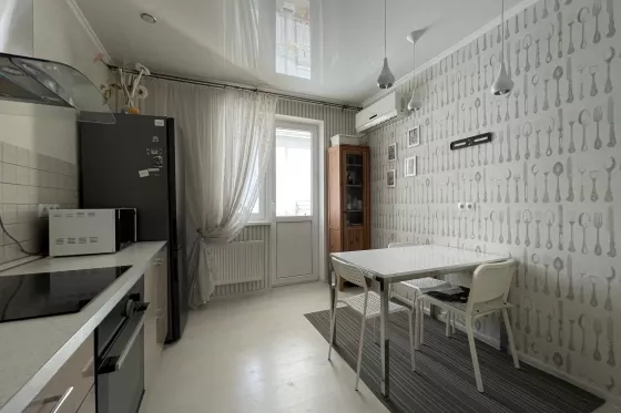 Квартира находится на 11 этаже . Из окон открываются потрясающий вид на частный сектор "Поле чудес".Планировка: общ. S=61 кв м, большая кухня с витражной лоджией 5 кв м , гостиная, спальня с дополнительной лоджией ( витражное остекление) 7 кв м , санузел совмещенный. Квартира с ремонтом, в стоимость входит мебельный гарнитур, сплит-системы, сан техника в комплекте.