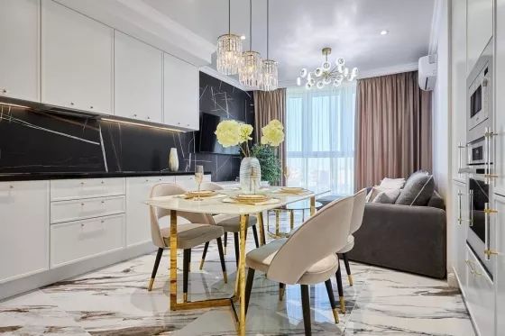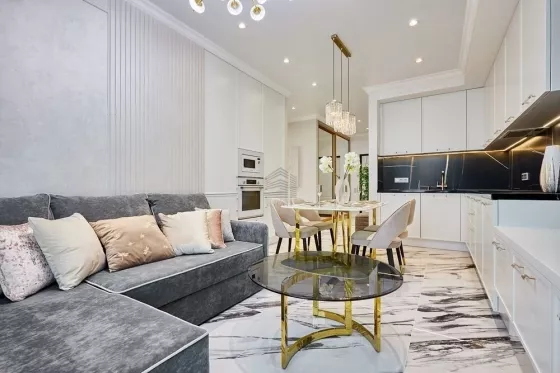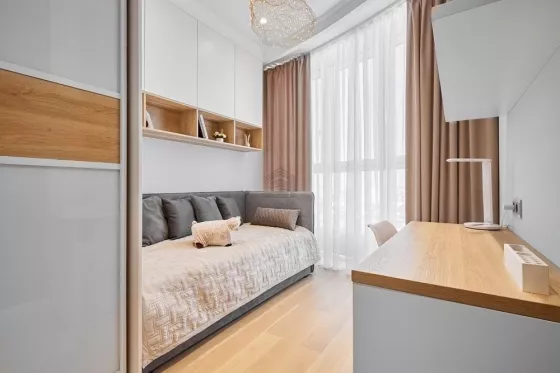 Развитая инфраструктура: фитнес клубы премиум класса, торговые центры , лучшая клиника в городе , супермаркеты , магазины , аптеки, прогулочные зоны, двор оборудован детскими площадками и фонтаном, велосипедные дорожки, многоуровневый и наземный паркинги, консьерж и охрана , камеры видеонаблюдения.