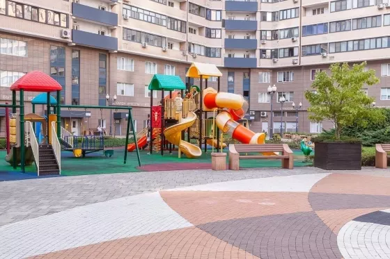 Уникальный двор: Безопасный и закрытый, без машин. Ландшафтный дизайн, уютные беседки, много зелени. Для детей — современные площадки, для взрослых — тренажёры. Это действительно один из лучших дворов в сегменте бизнес-класса!