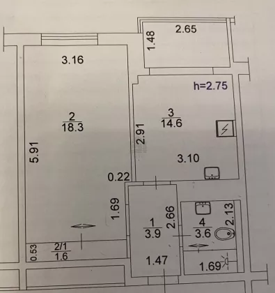 Жилая площадь18.5