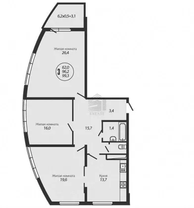 ⚜️Общая площадь 105 кв м, 13.7 кв м кухня. лоджия застеклена. 16 этаж .