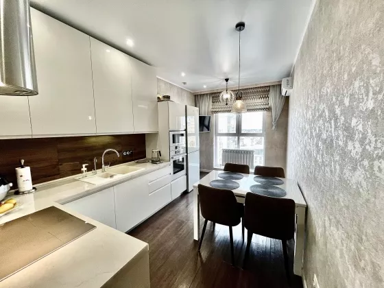 Квартира находится на 23 этаже . Из окон открываются потрясающие виды на историческую часть города. Планировка: общ. S=42 м, спальня и кухня-гостиная, с/у, просторная витражная лоджия . В квартире выполнен качественный, дизайнерский ремонт. Вся мебель и техника остаются.