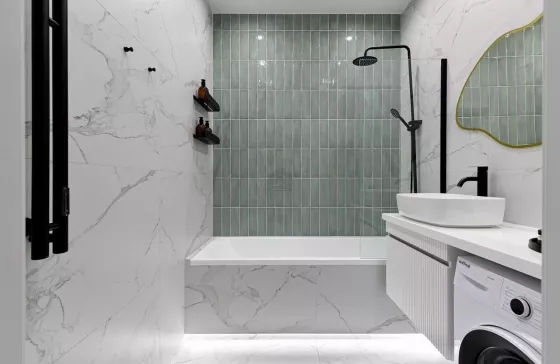 ➣Натуральные материалы: камень, широкоформатная плитка.
