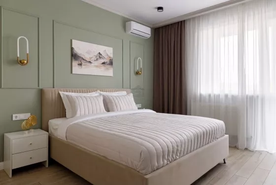 ➣Кухня-гостиная для душевных встреч, две изолированные спальни, раздельный санузел, гардеробная и балкон.