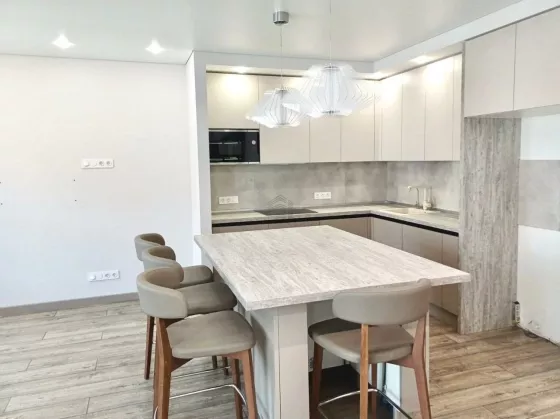 Квартира находится на 15 этаже . Из окон открываются потрясающие виды.Планировка: общ. S=82 м, 2 спальни и кухня-гостиная, 2 с/у, просторная витражная лоджия . В квартире выполнен качественный ремонт. Вся мебель и техника остаются.