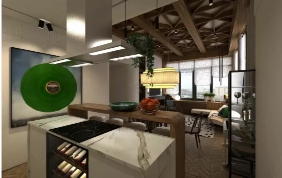 ➤ Комнаты: мастер-спальня с гардеробной и ванной, две детские, гостиная-кухня с островом