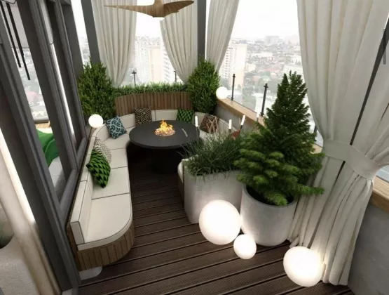 ➤ Терраса: большая, с дизайнерским решением — очаг, зона отдыха, место для шезлонгов и растений