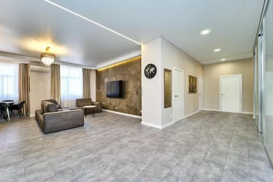 Площадь квартиры — 134,4 м², расположена на 7 этаже 16-этажного монолитно-кирпичного дома премиум-класса. Просторная кухня-гостиная 50 м², жилая зона — 70 м², продуманная планировка обеспечивает максимум света и уюта. Выполнен дизайнерский ремонт, вся мебель и техника остаются новому владельцу. Есть балкон, отдельный санузел и полноценное ощущение простора.