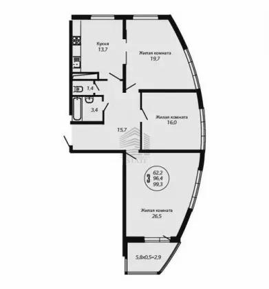 ⚜️Общая площадь 102 кв м, 62 кв м комната, 14 кв м кухня. лоджия застеклена. 5 этаж .