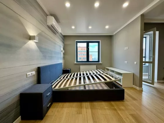 Квартира находится на 17 этаже . Из окон открываются потрясающие виды.Планировка: общ. S=44 м,  спальня и кухня-гостиная,  с/у, просторная витражная лоджия .