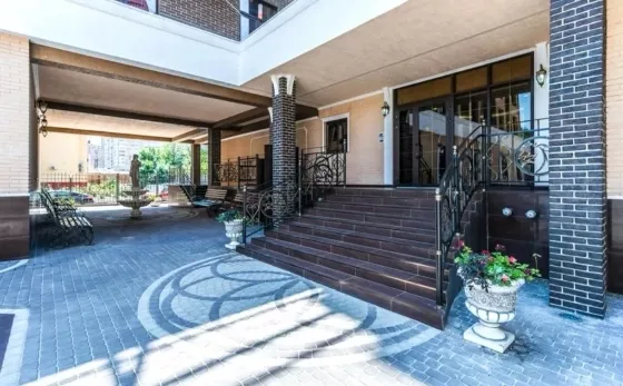 Подъезд c дизайнерским ремонтом отельного типа с круглосуточным консьерж-сервисом. Гостевая-переговорная комната на первом этаже.