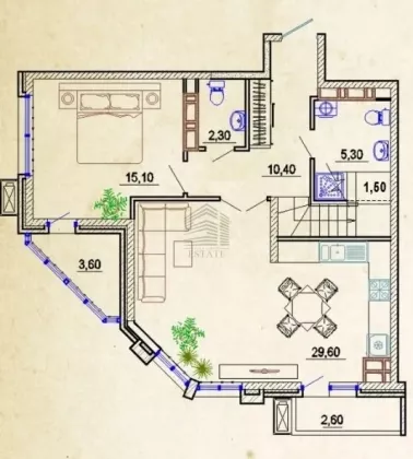 Проект плaнировки пентхауса разработан таким образом, что позволяет изменить его в соответствии со своими предпочтениями, не затрагивая несущих конструкций. Например расположить: