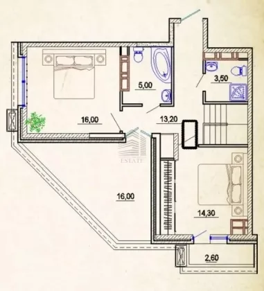 На 2-м этаже – две спальни, ванную комнату, постирочную, террасу