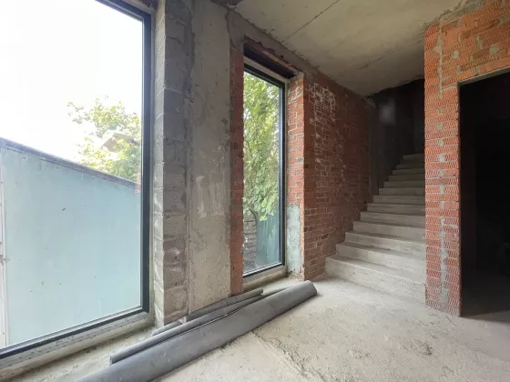 - Стены выполнены из кирпича внутренние стены и перегородки из шлакоблока , усилены армированным поясом с 12 арматурами по 4 жилы.