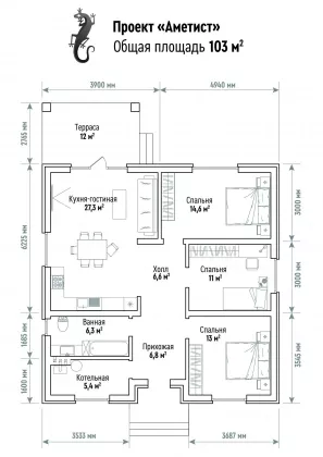 Площадь дома 103 кв.м. — идеальное решение для вашей семьи.