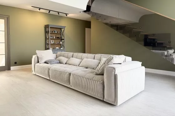 • 381 м² продуманной до мелочей площади: светлая кухня-гостиная, мастер-спальня с санузлом и гардеробной, детские, кабинеты, постирочная, гардеробные, зона SPA и отдыха.