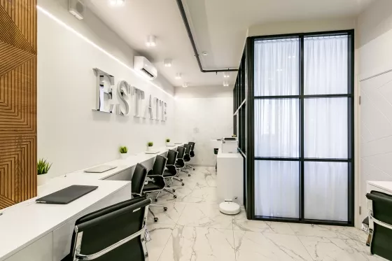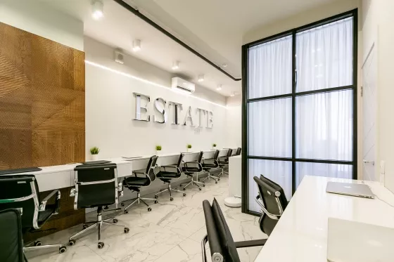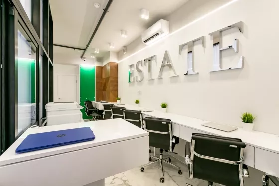 •Функциональная планировка: зона ресепшн, кухня, санузел с душем, рабочее пространство и переговорная.