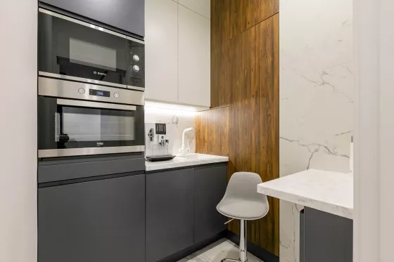 •Дизайнерский интерьер в стиле loft + минимализм, качественные материалы, строгая эстетика.