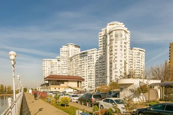 ЖК Бригантина на улице Кубанская набережная. Комплекс расположен в Историческом центре города на берегу реки Кубань.