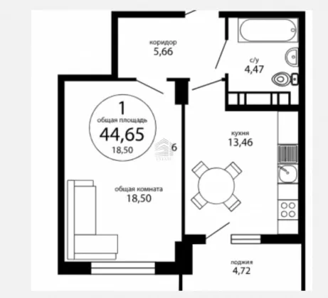 Квартира находится на 6 этаже. Окна выходят во двор. Планировка: общ. S=44,65 м+лоджия, с/у совмещенный. Есть большая просторная лоджия. Высота потолков 2,85м.