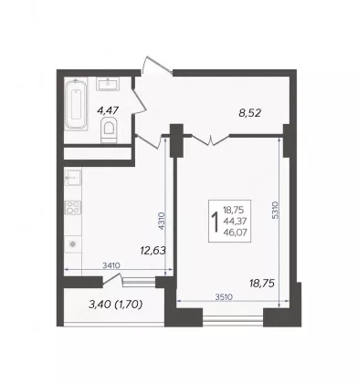 | Площадь, кв.м. | 44 |