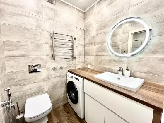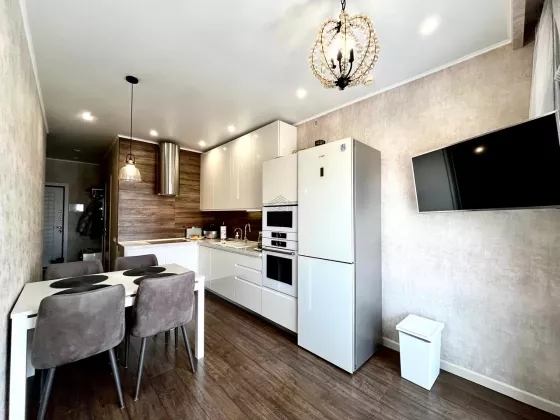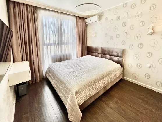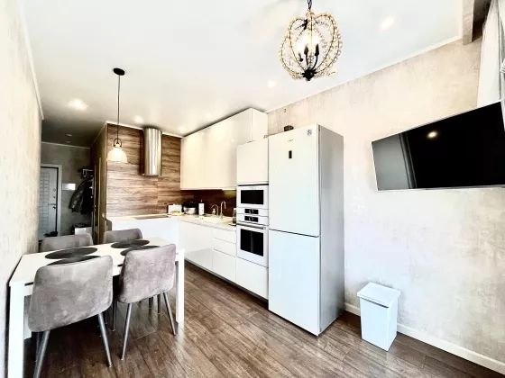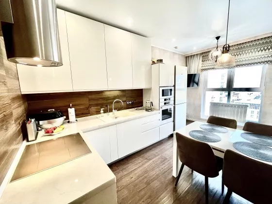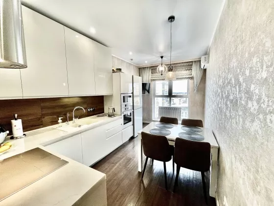 Квартира находится на 23 этаже . Из окон открываются потрясающие виды на историческую часть города. Планировка: общ. S=42 м, спальня и кухня-гостиная, с/у, просторная витражная лоджия . В квартире выполнен качественный, дизайнерский ремонт. Вся мебель и техника остаются.