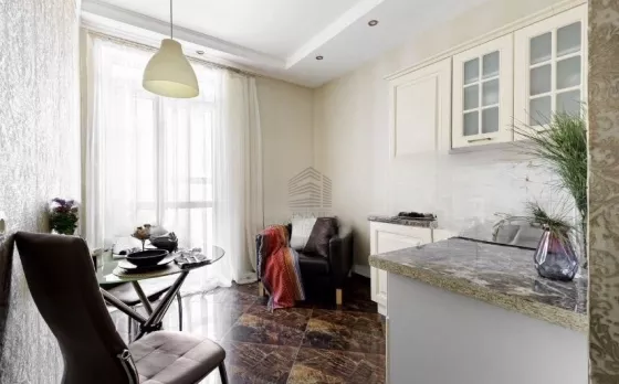 Квартира находится на 11 этаже . Из окон открываются потрясающие виды на историческую часть города. Планировка: общ. S=41 м, спальни и кухня-гостиная, с/у, просторная витражная лоджия .