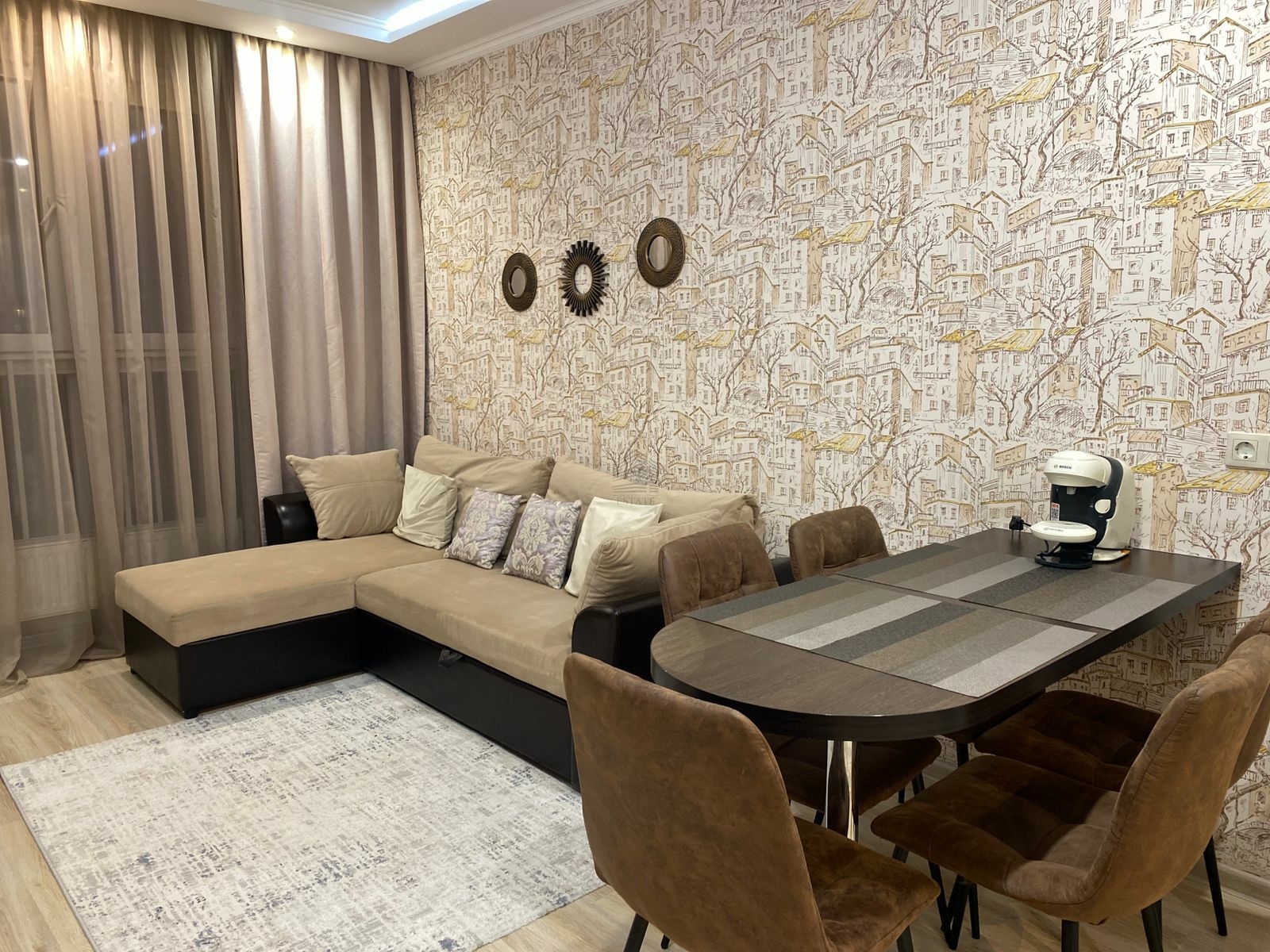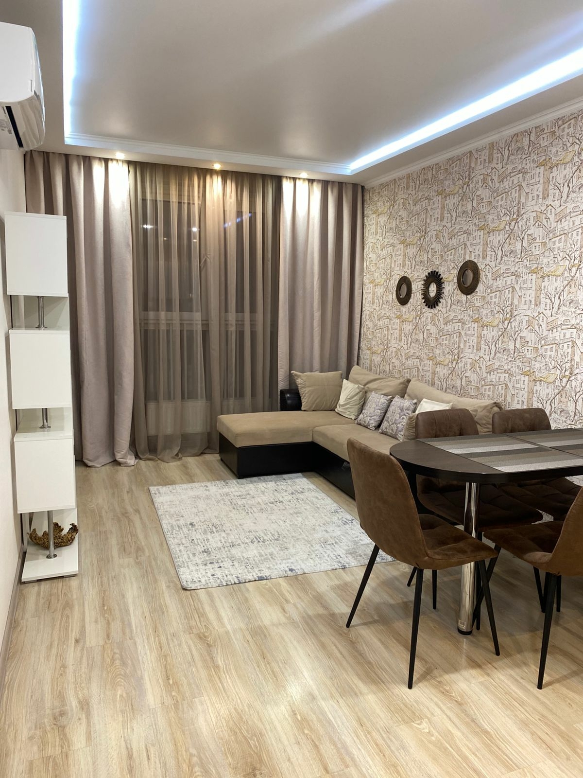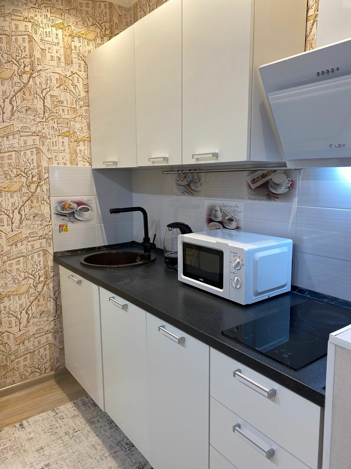 Квартира находится на 11 этаже . Из окон открываются потрясающие виды на историческую часть города. Планировка: общ. S=41 м, спальня и кухня-гостиная, с/у, просторная витражная лоджия .