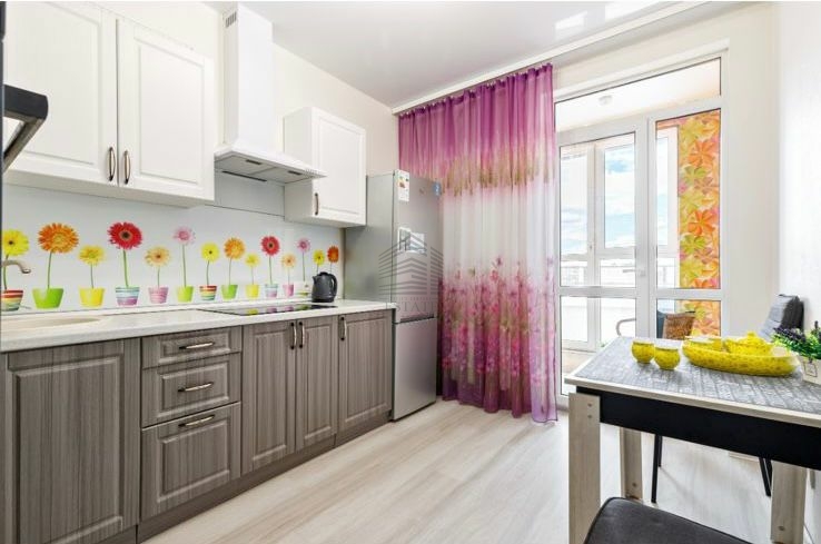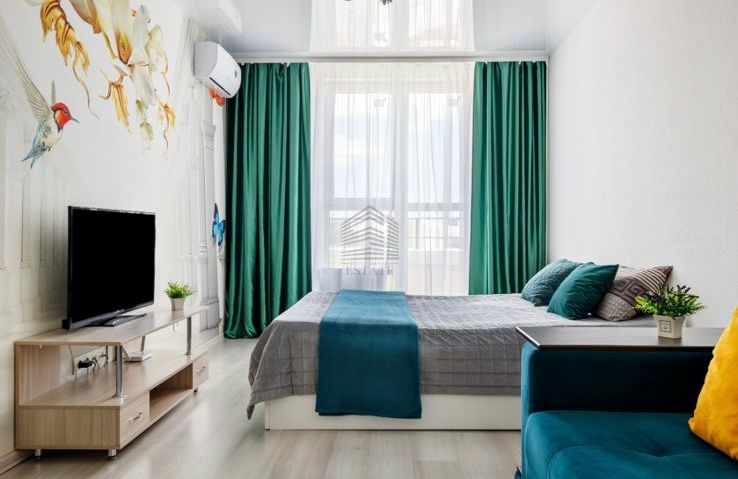 Квартира находится на 14 этаже . Из окон открываются потрясающие виды на историческую часть города. Планировка: общ. S=41 м, спальня и кухня-гостиная, с/у, просторная витражная лоджия .