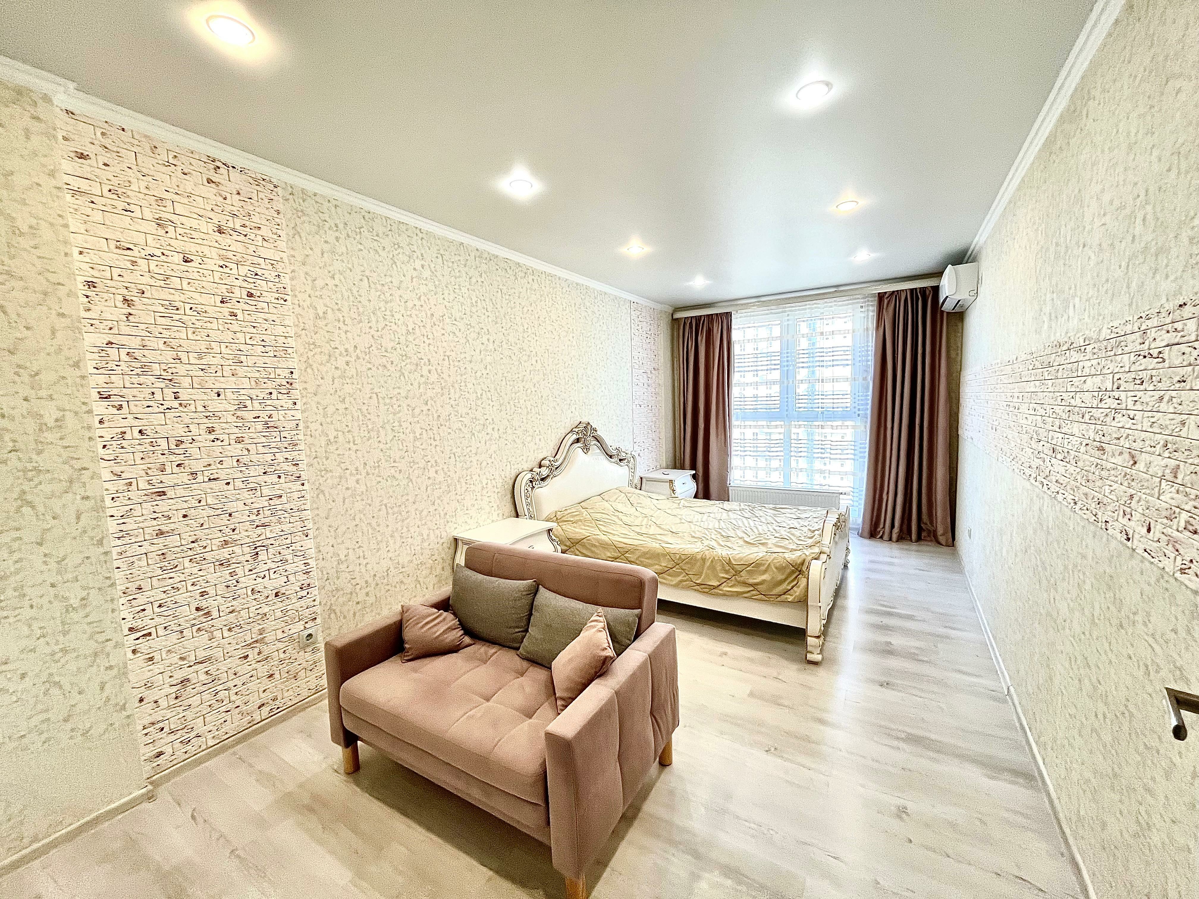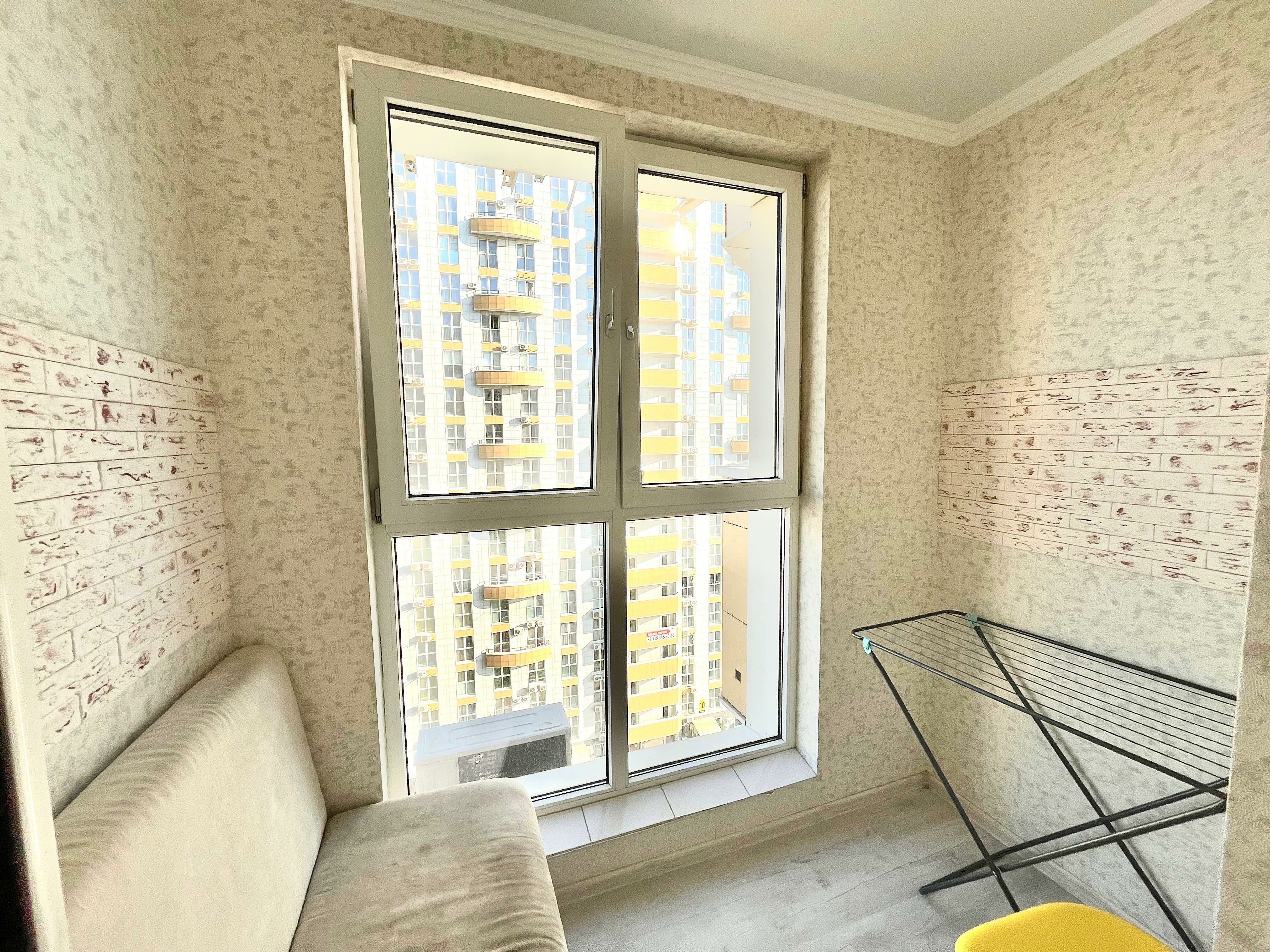 Квартира находится на 13 этаже . Из окон открываются потрясающие виды на историческую часть города. Планировка: общ. S=41 м, спальня и кухня-гостиная, с/у, просторная витражная лоджия . Вся мебель и техника остаются.