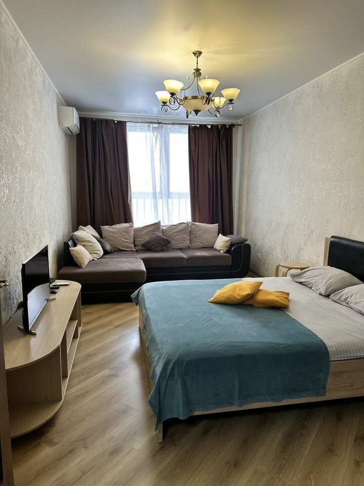 Квартира находится на 10 этаже . Из окон открываются потрясающие виды на историческую часть города. Планировка: общ. S=40 м, спальня и кухня-гостиная, с/у, просторная витражная лоджия .