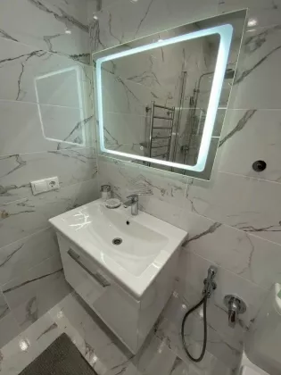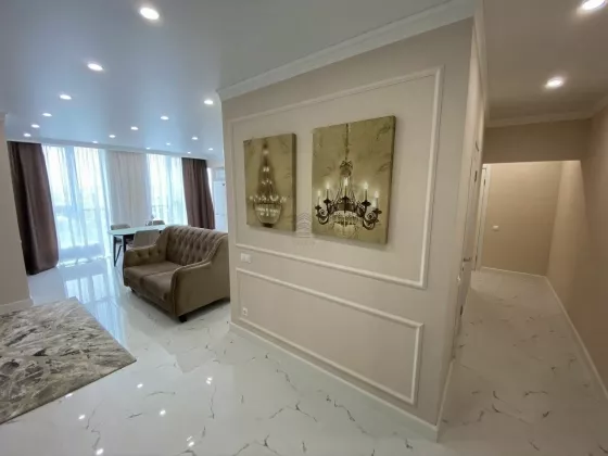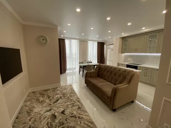 Квартира находится на 12 этаже . Из окон открываются потрясающие виды на историческую часть города. Планировка: общ. S=68 м, спальня и кухня-гостиная, 2 с/у, просторная витражная лоджия .