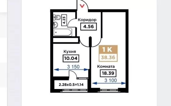 Продается однокомнатная квартира, 39 кв.м., 16/25 эт