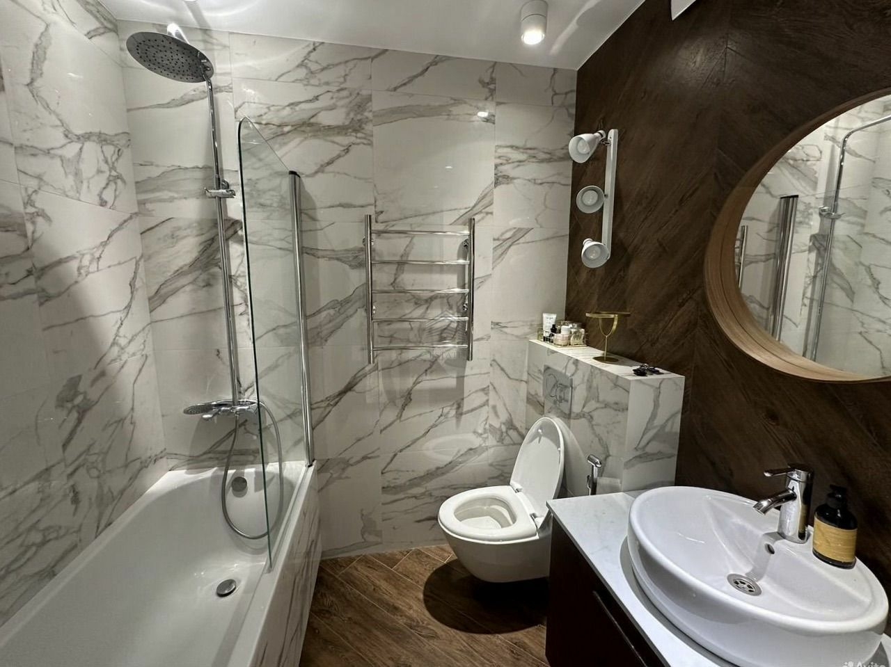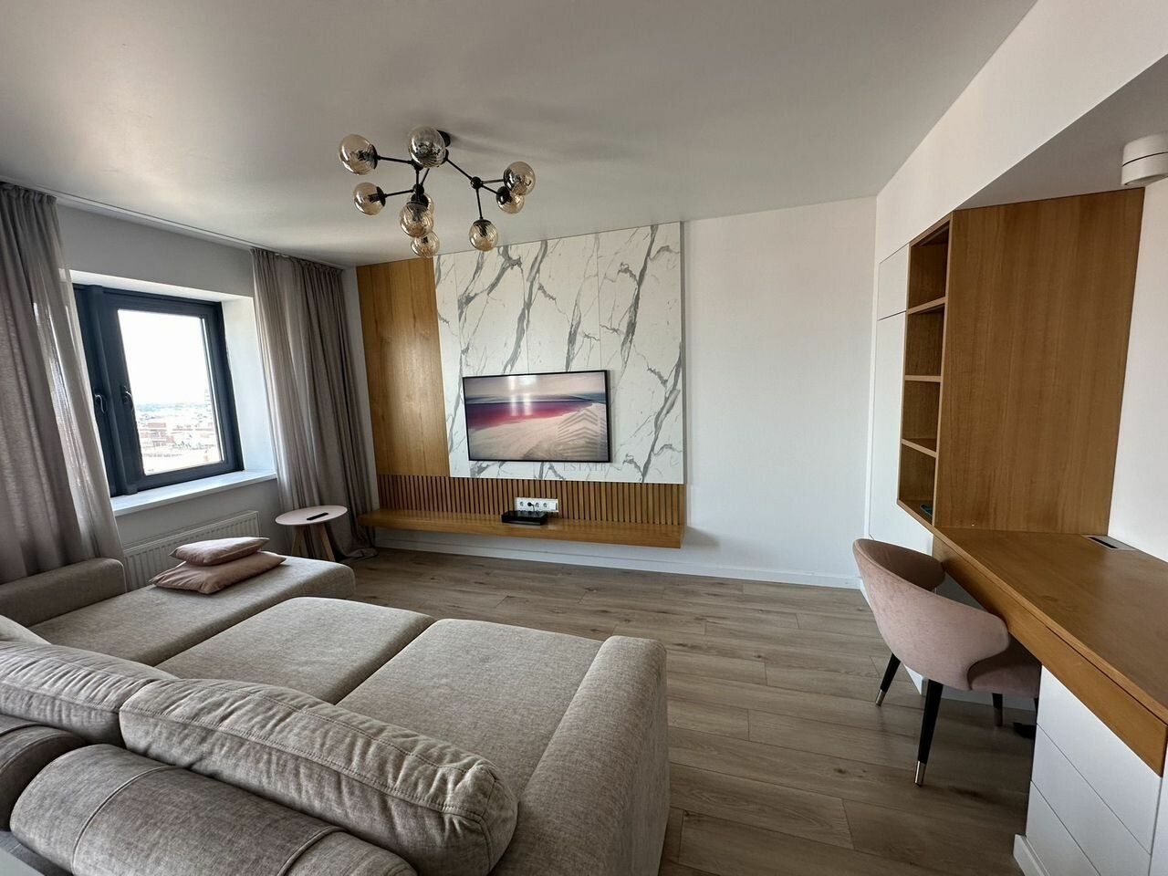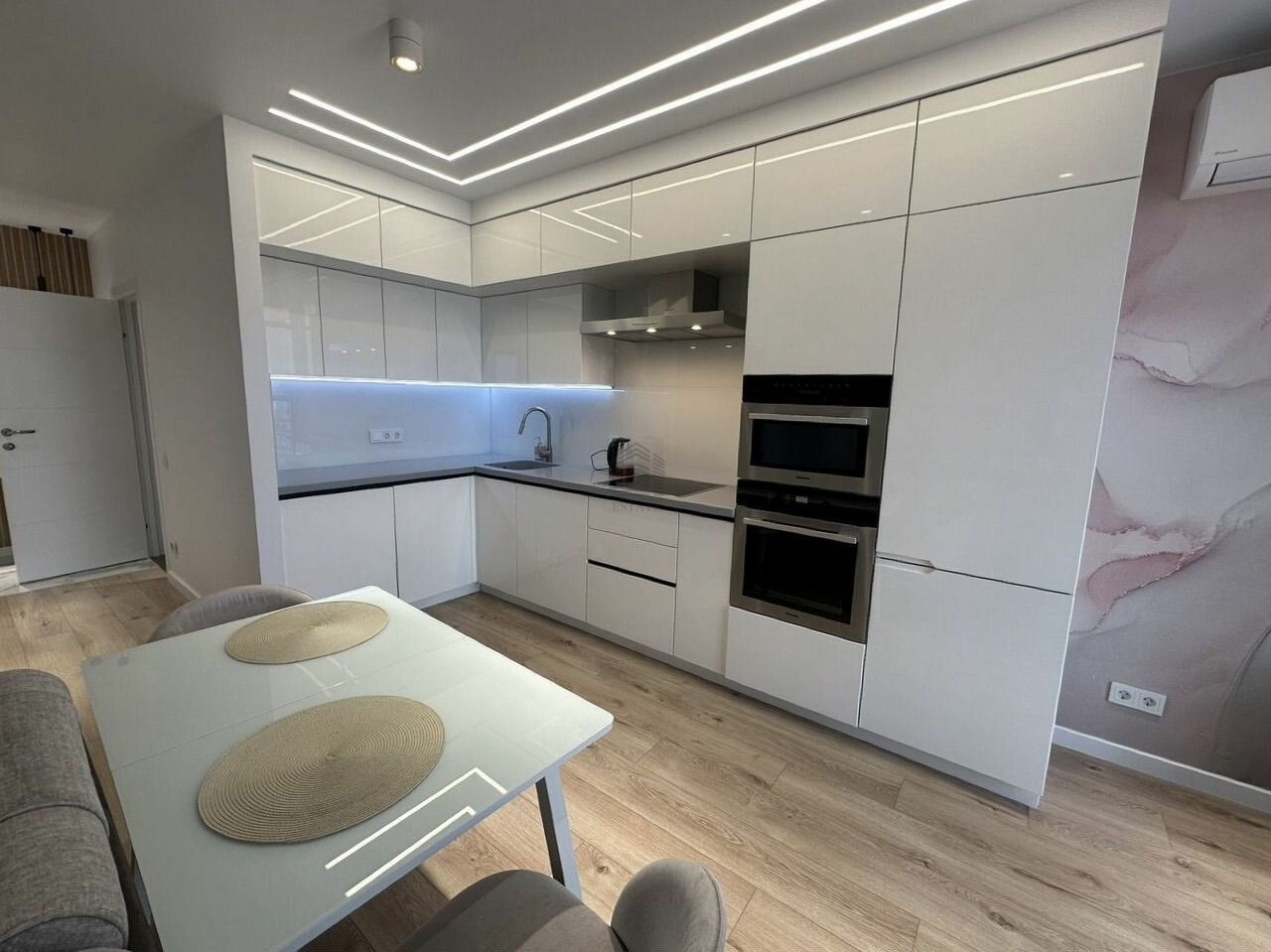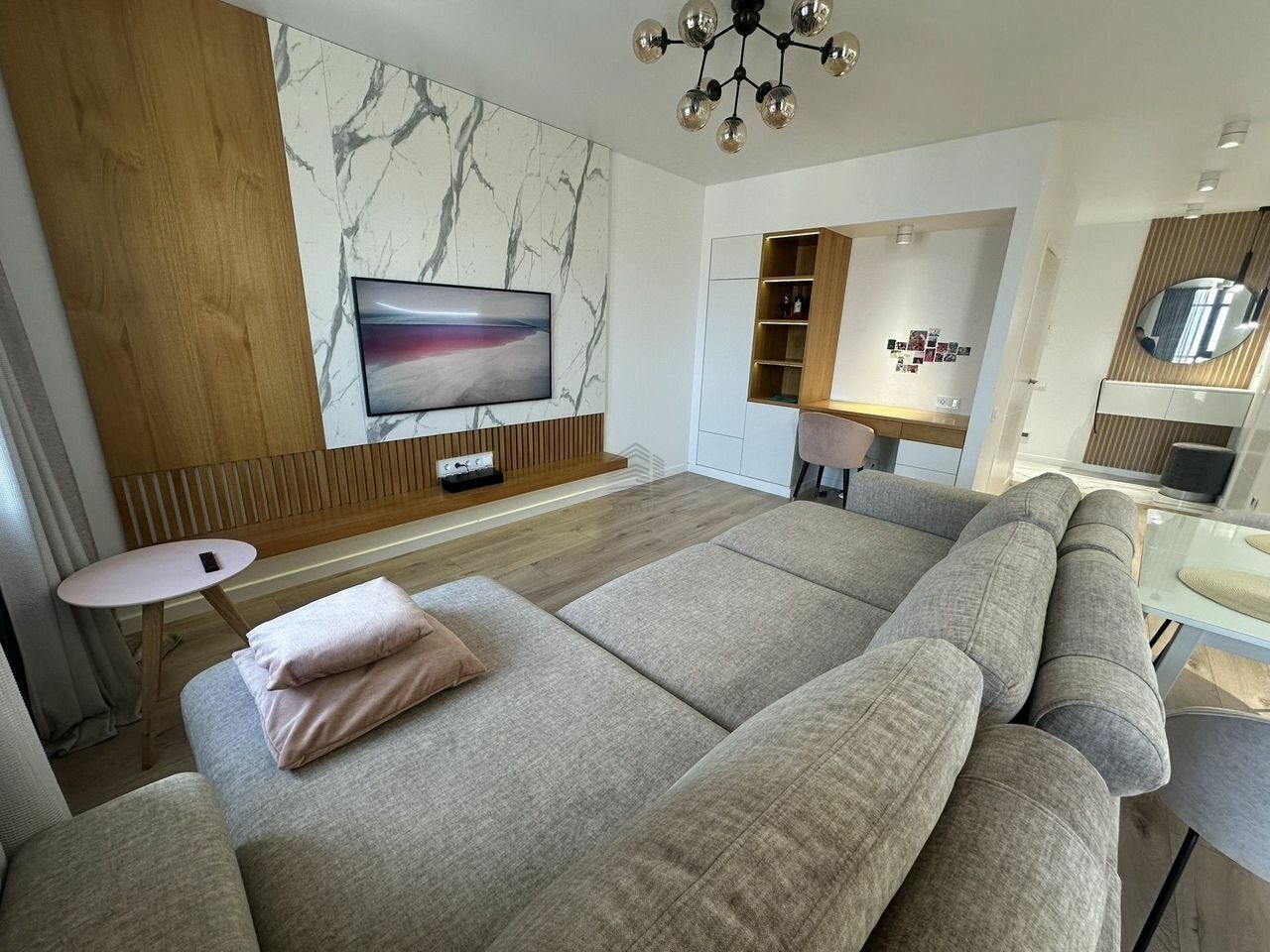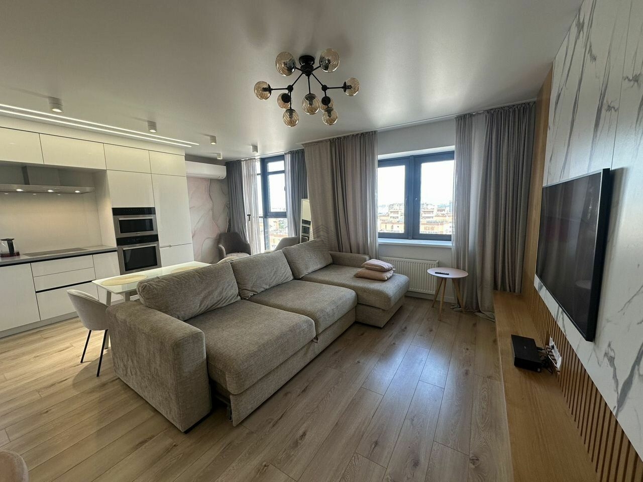 Квартира находится на 24 этаже . Из окон открываются потрясающие виды.Планировка: общ. S=41 м, спальня и кухня-гостиная, с/у, просторная витражная лоджия . Квартира с дизайнерским ремонтом. Вся мебель и техника остаются.