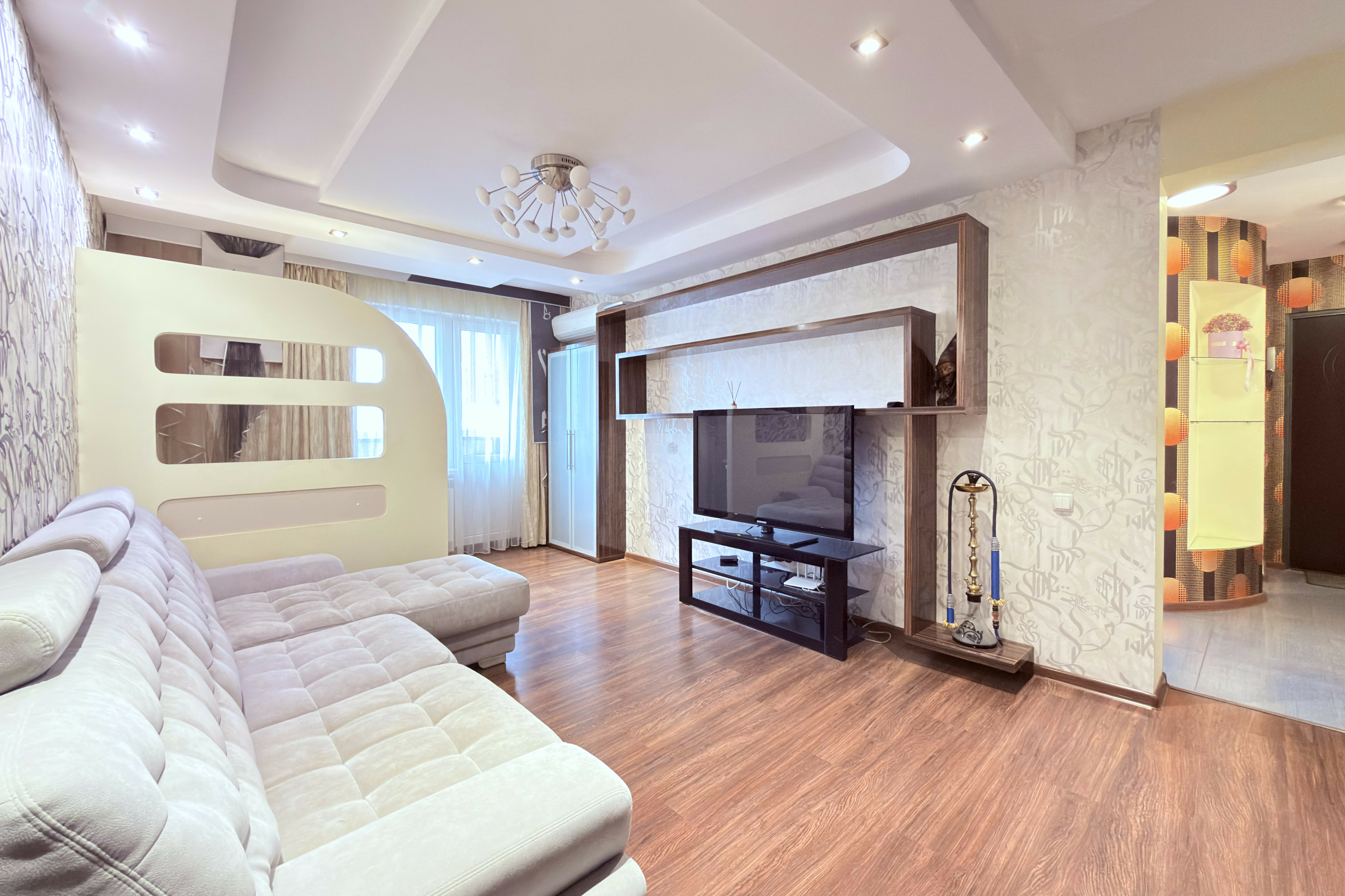 Квартира с качественным ремонтом, полностью готова к проживанию без дополнительных вложений. Остаются мебель и техника: встроенная кухня, система фильтрации воды, посудомоечная и стиральная машины, телевизоры, сплит-системы Mitsubishi. Всё в отличном состоянии.