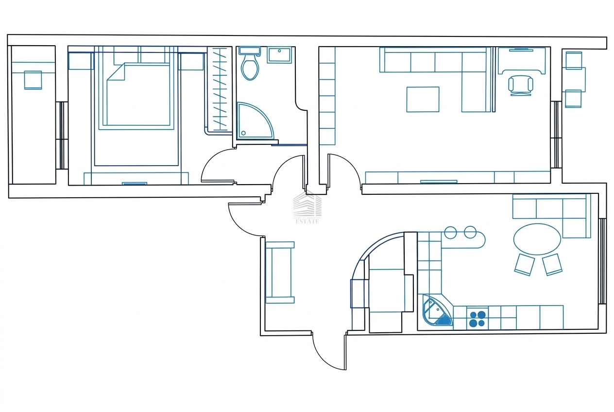 Планировка на две стороны, узаконенная перепланировка: просторная кухня-столовая, гостиная, отдельная спальня, гардеробная, санузел, 2 утеплённых застеклённых балкона. Общая площадь с учётом балконов — 72,2 м².