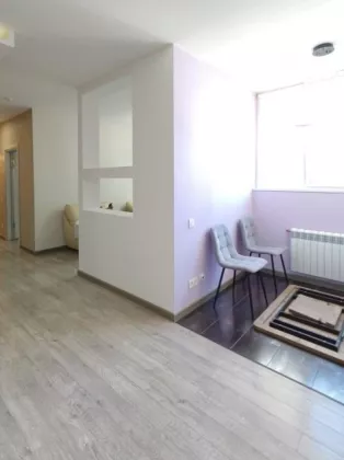- Качественный ремонт: обои из Италии и Германии, сантехника из Франции. Теплые полы, сплит-системы в каждой комнате, кожаная мебель в зале и дизайнерский спальный гарнитур.
