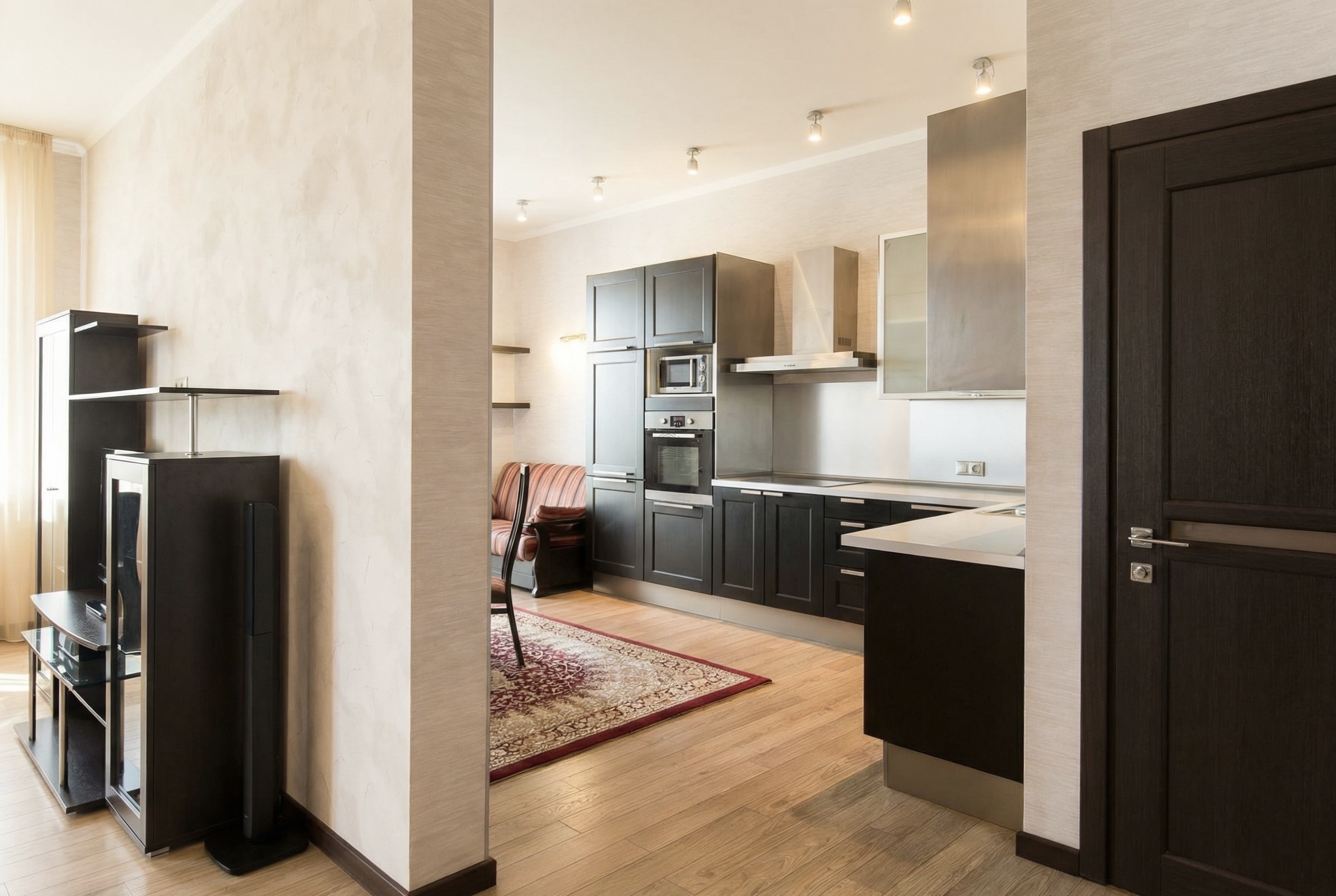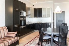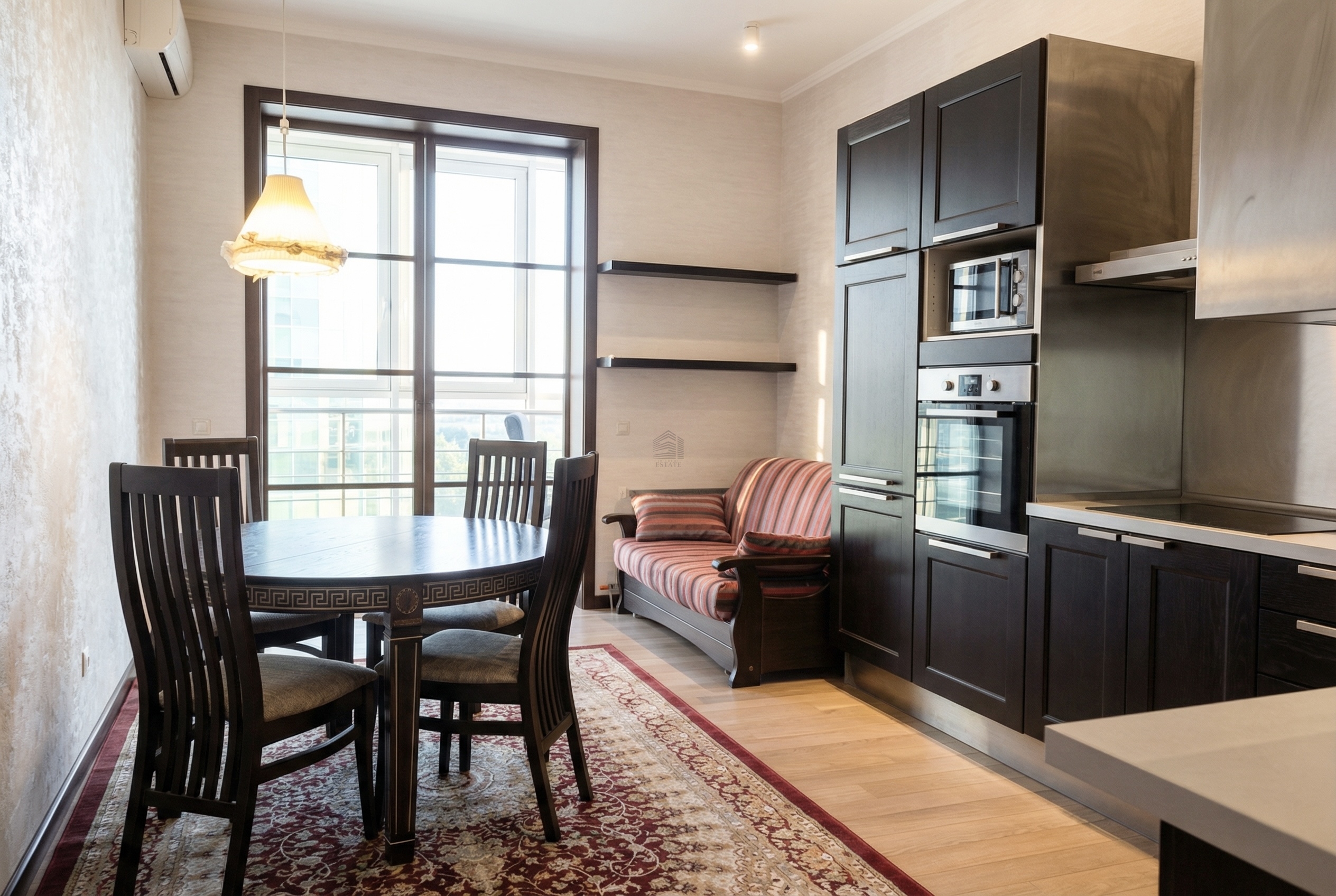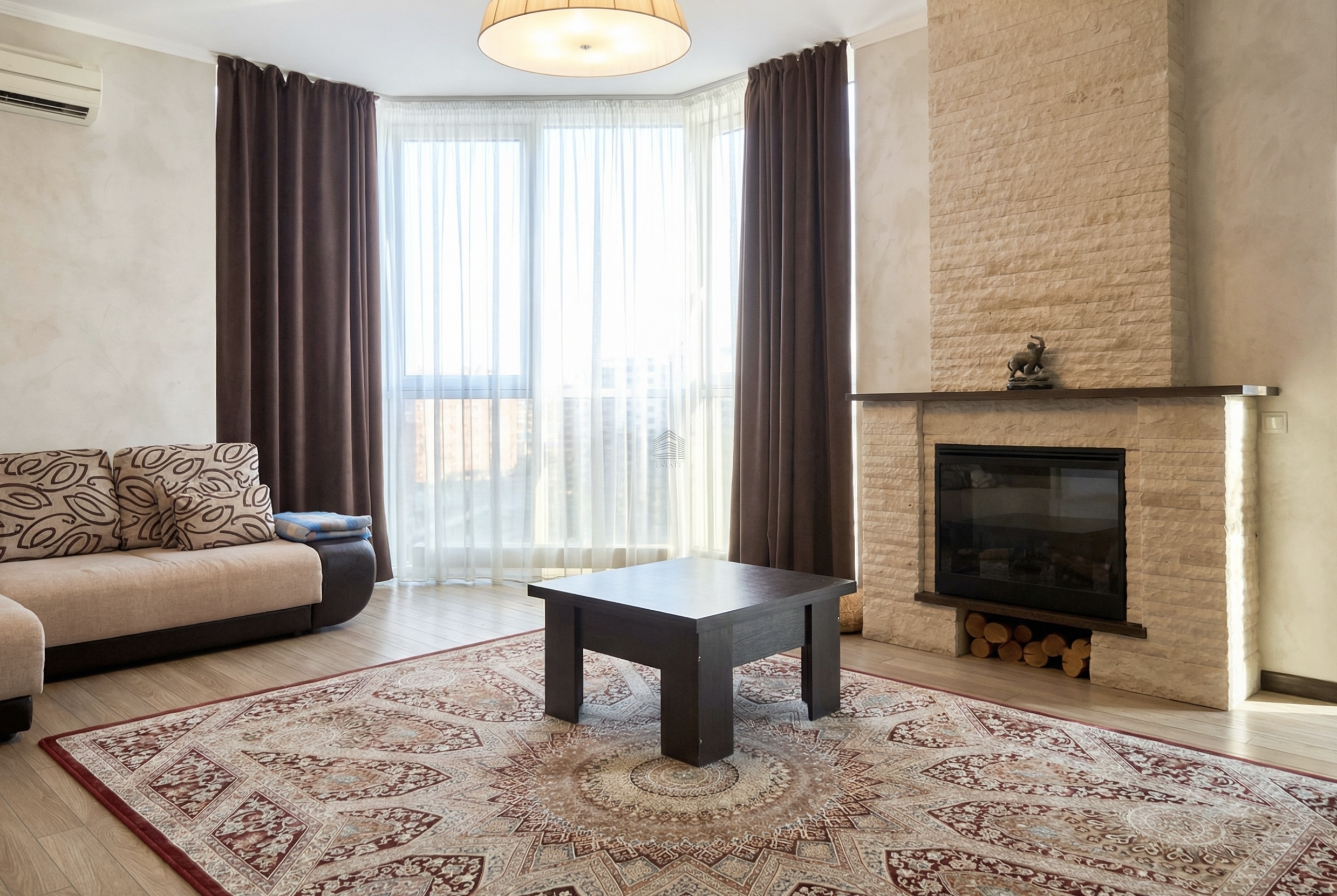 В квартире выполнен качественный ремонт. Просторная гостиная, большие панорамные окна, установлен камин. Квартира светлая и комфортная для жизни.