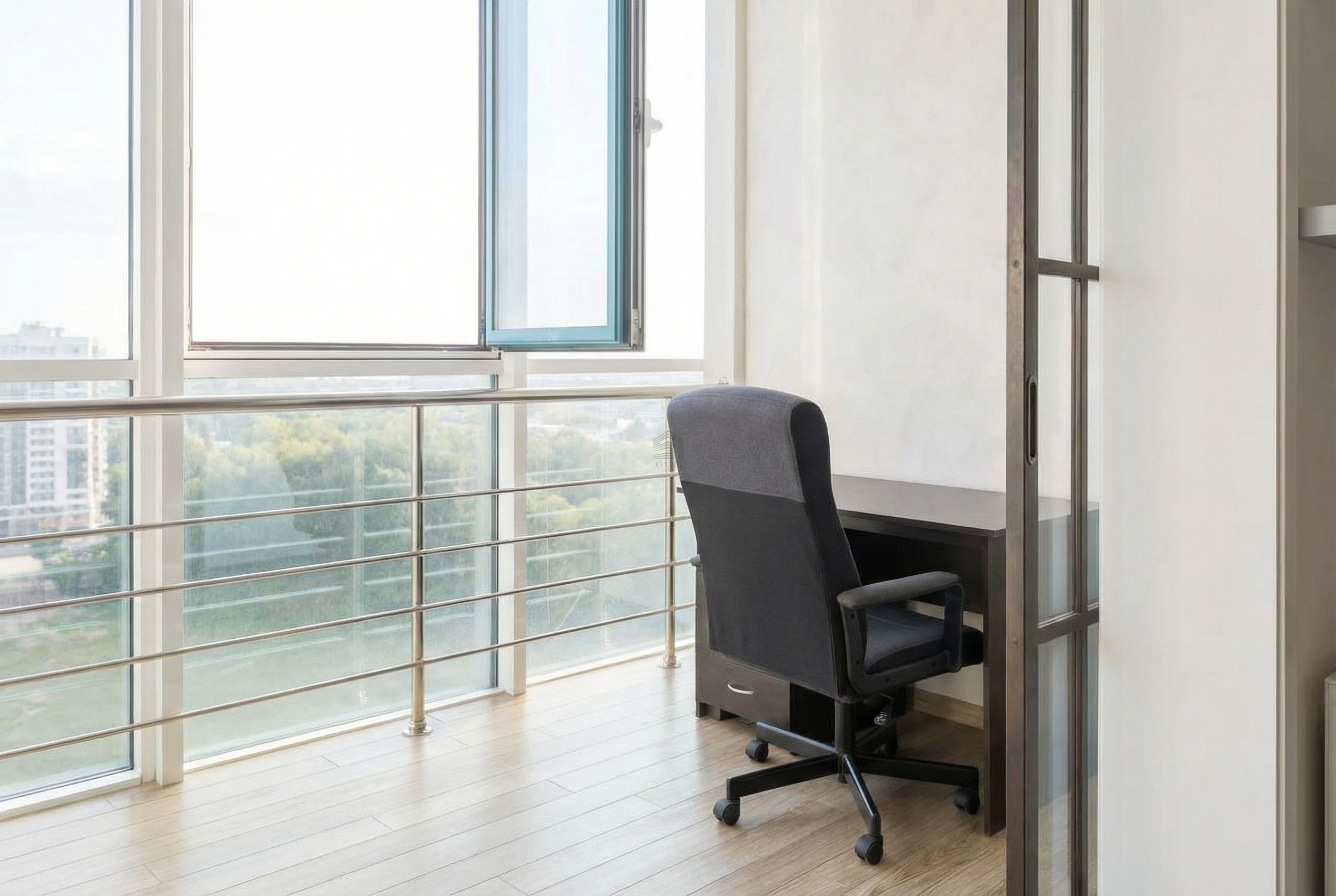 Площадь квартиры — 82,4 м², дополнительно лоджия 11 м². Из окон открывается панорамный вид на реку Кубань и парк.