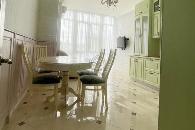 Квартира находится на 3 этаже . вид во двор .Планировка: общ. S=95 м, 2 спальни и кухня-гостиная, 2 с/у, витражная остекление . Высота потолков 3 м.Сделан качественный ремонт, полы -паркет, керамогранит, двери и кухонная мебель -массив , комнаты 27 и 24 кв м , имеются зоны хранения в коридоре, постирочная . Территория комплекса закрытого типа .Тихое место, хорошая звукоизоляция.