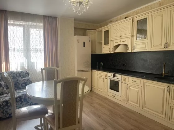 Квартира находится на 11 этаже . Из окон открываются потрясающие виды на историческую часть города. Планировка: общ. S=90 м, 2 спальни и кухня-гостиная, 2 с/у, просторная витражная лоджия .