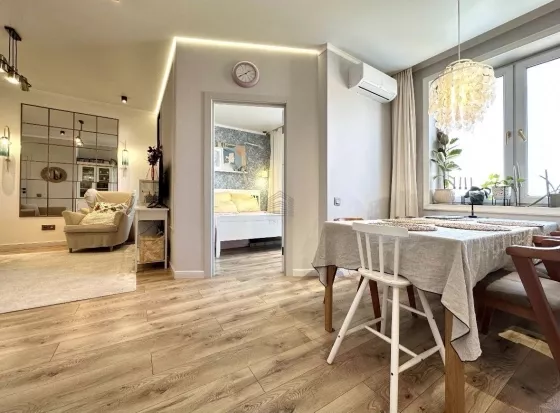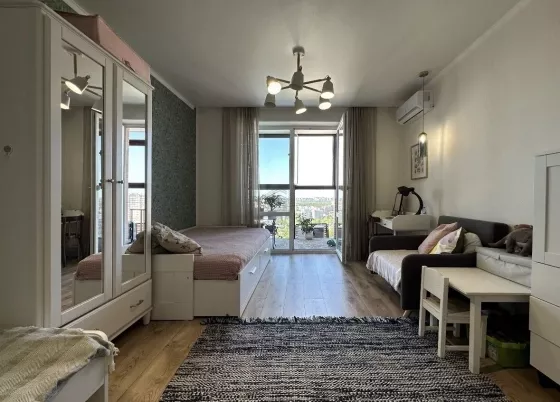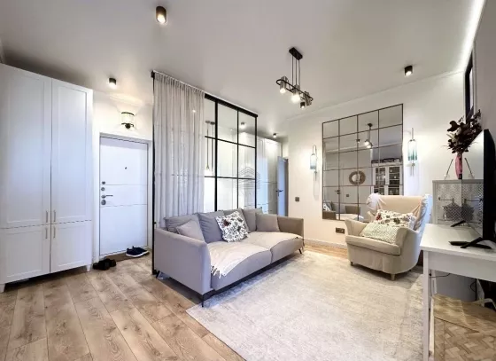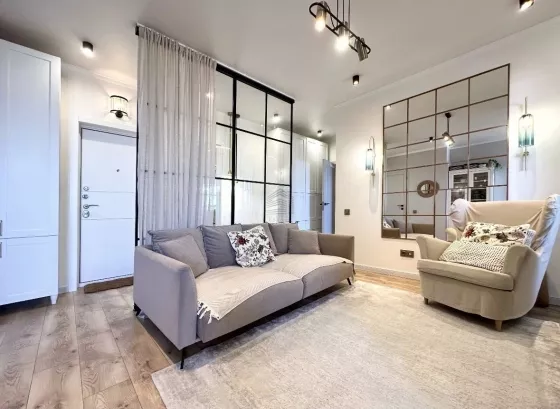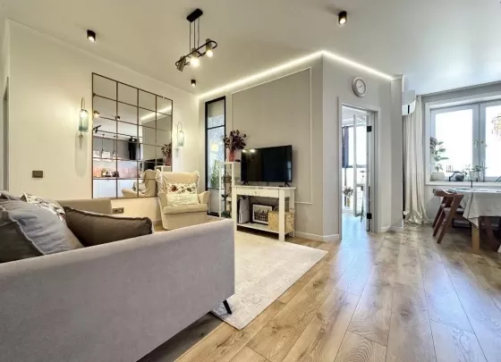 В квартире выполнен дизайнерский ремонт. Вся мебель и техника остаются.