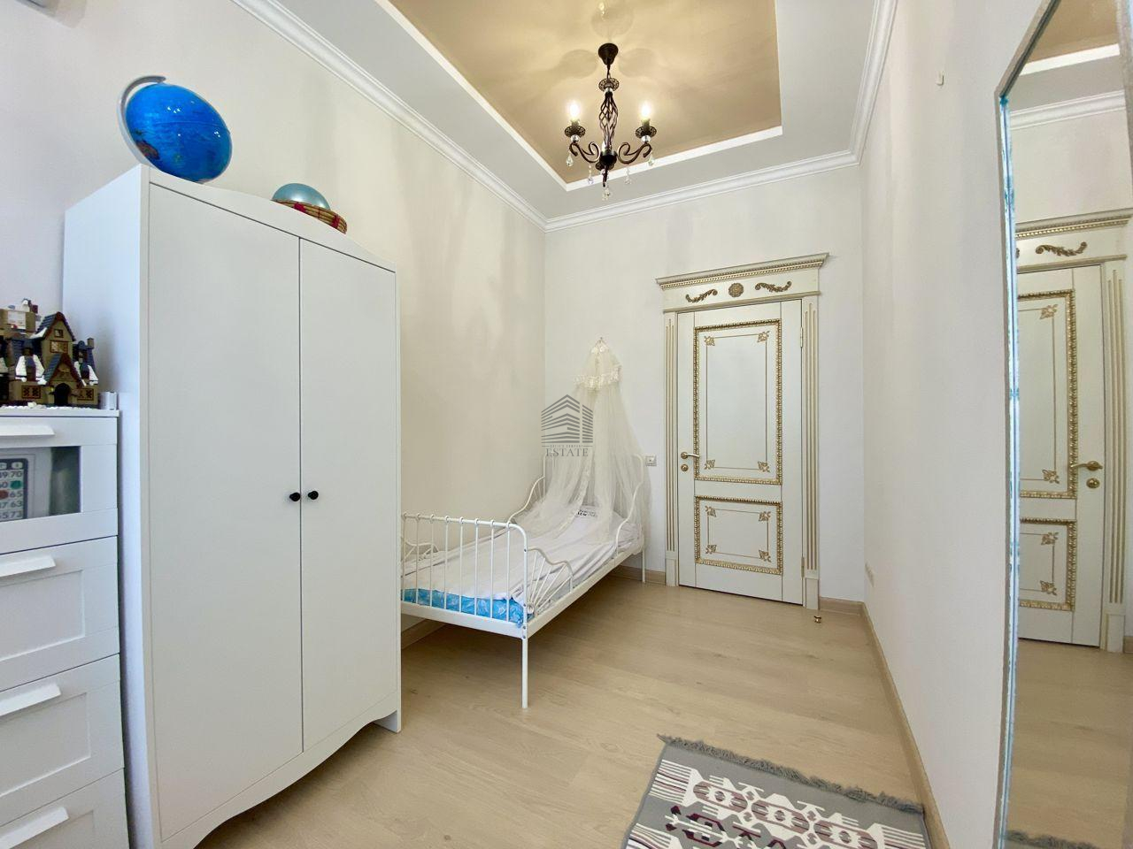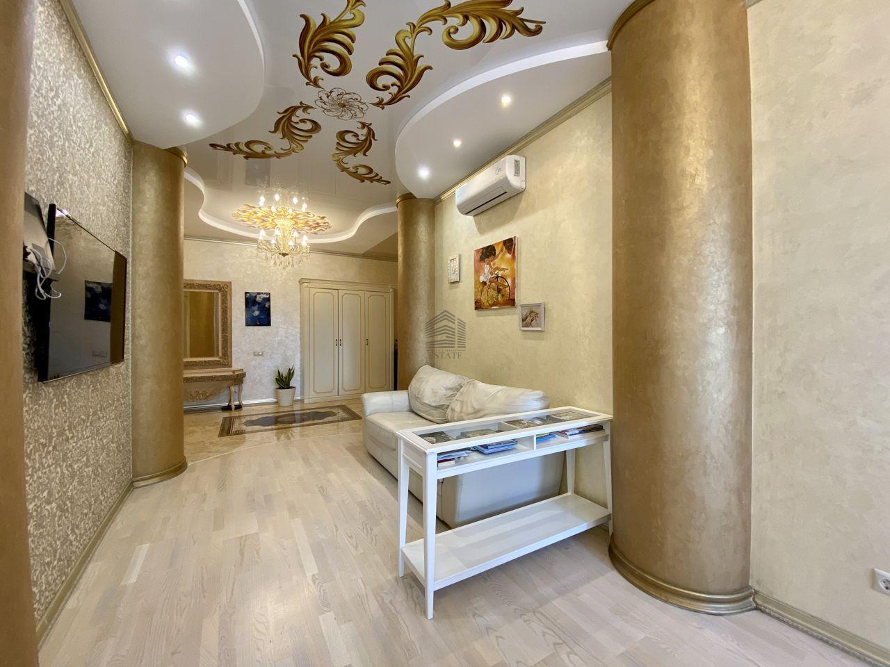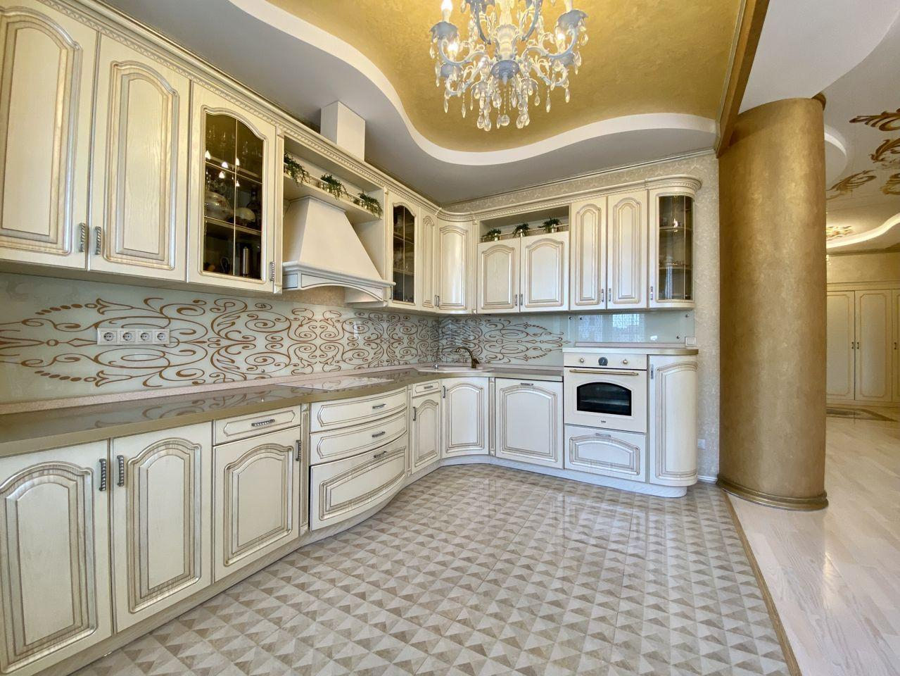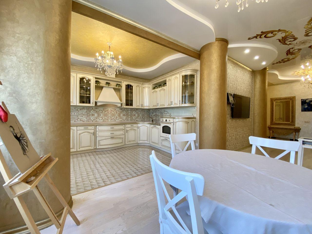 Квартира находится на 8 этаже . Планировка: общ. S=122 м, кухня- гостиная и 3 изолированных комнаты, гардеробная, 2 с/у, просторная лоджия . Ремонт в классическом стиле (светлые тона).