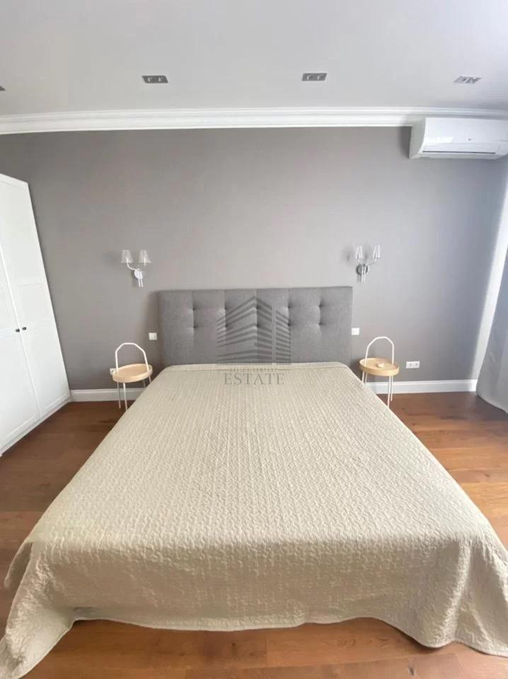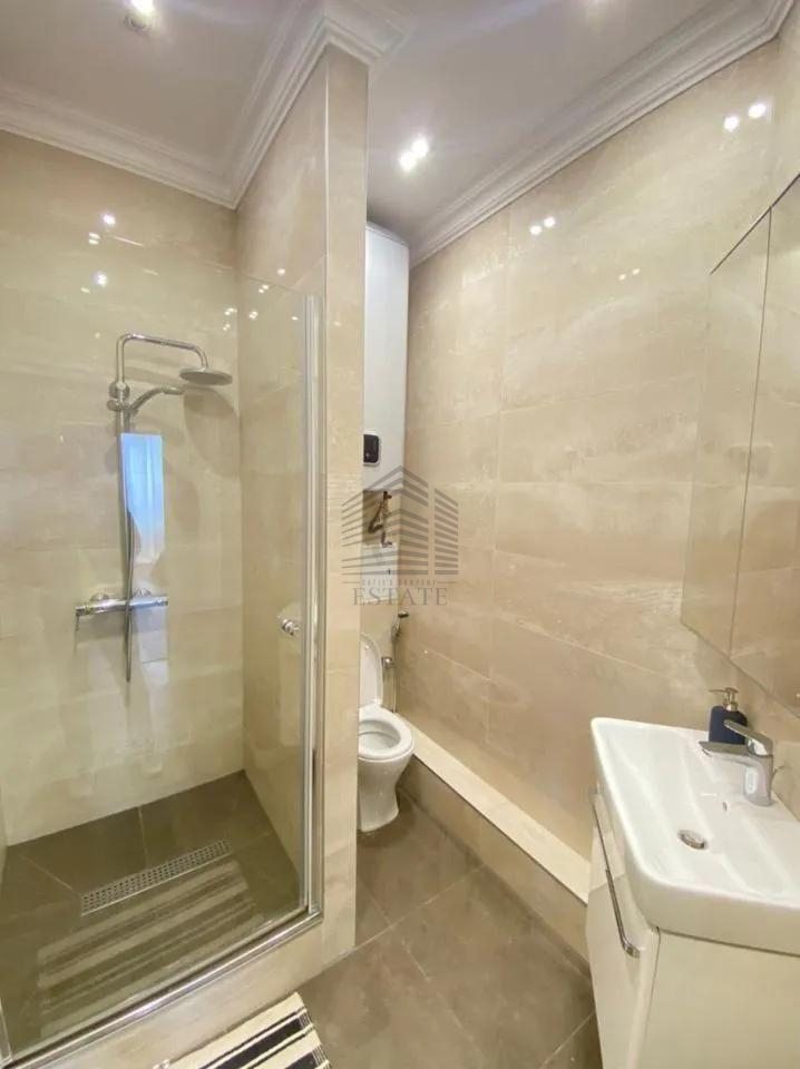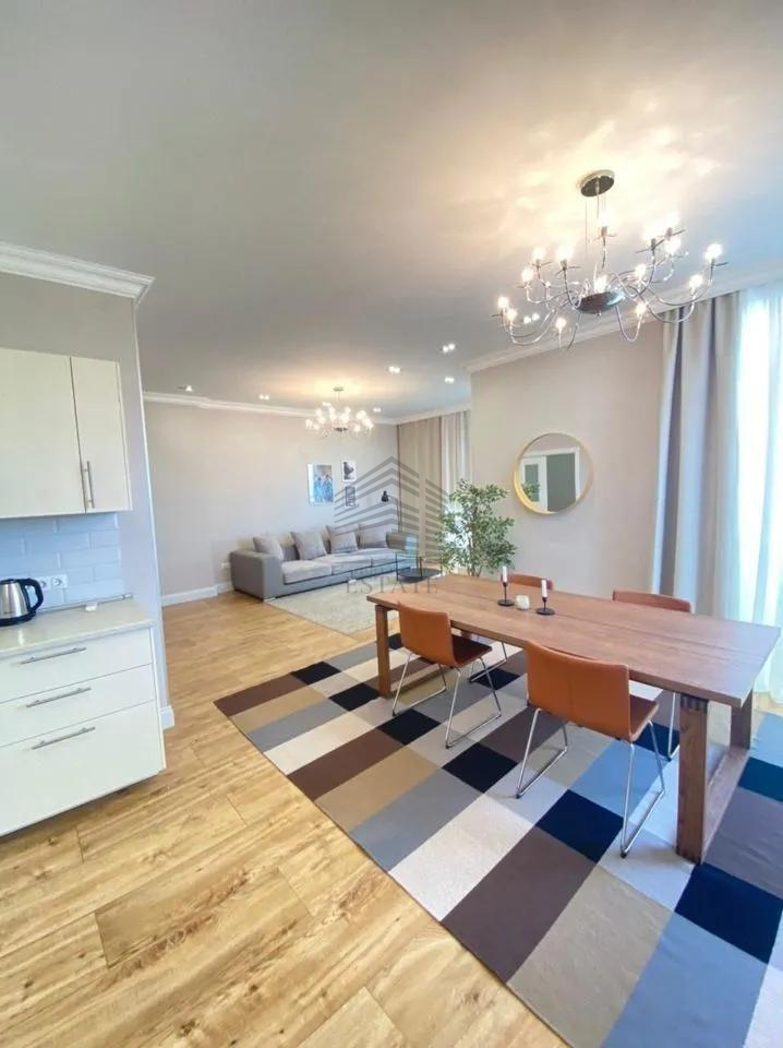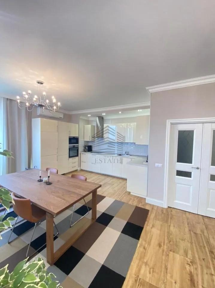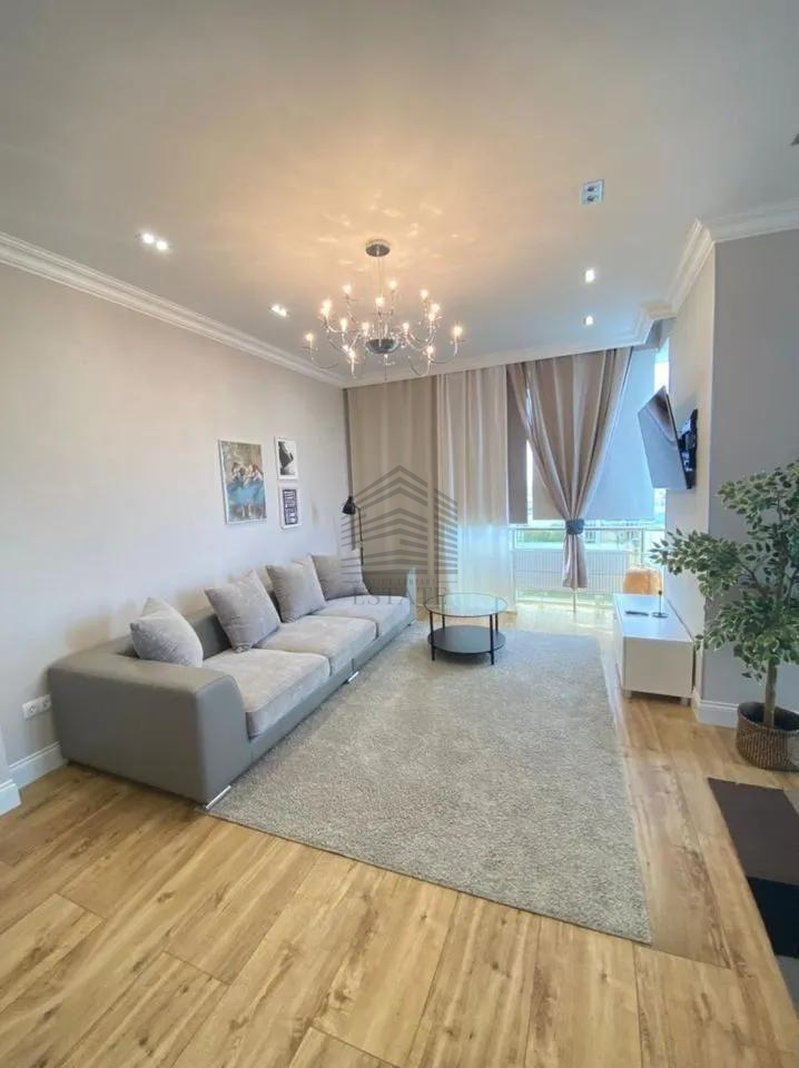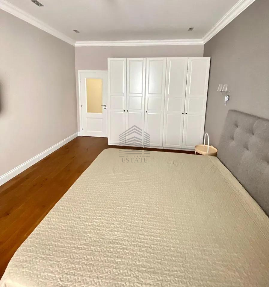 Площадь — 130 м², 16 этаж из 22, планировка: кухня-гостиная 50 м², две спальни (в том числе хозяйская с собственным санузлом и гардеробной), два санузла, ванная и две душевые кабины. Квартира полностью меблирована и оснащена техникой: духовой шкаф, варочная панель, посудомоечная машина, стиральная машина, сушильная, холодильник, кондиционеры во всех комнатах, бойлер на 150 л, тёплые полы. Ремонт европейского уровня, материалы — Испания и Италия. Дом кирпично-монолитный с вентфасадом из керамогранита, закрытая территория, охрана, видеонаблюдение, консьерж, подземный и наземный паркинг.