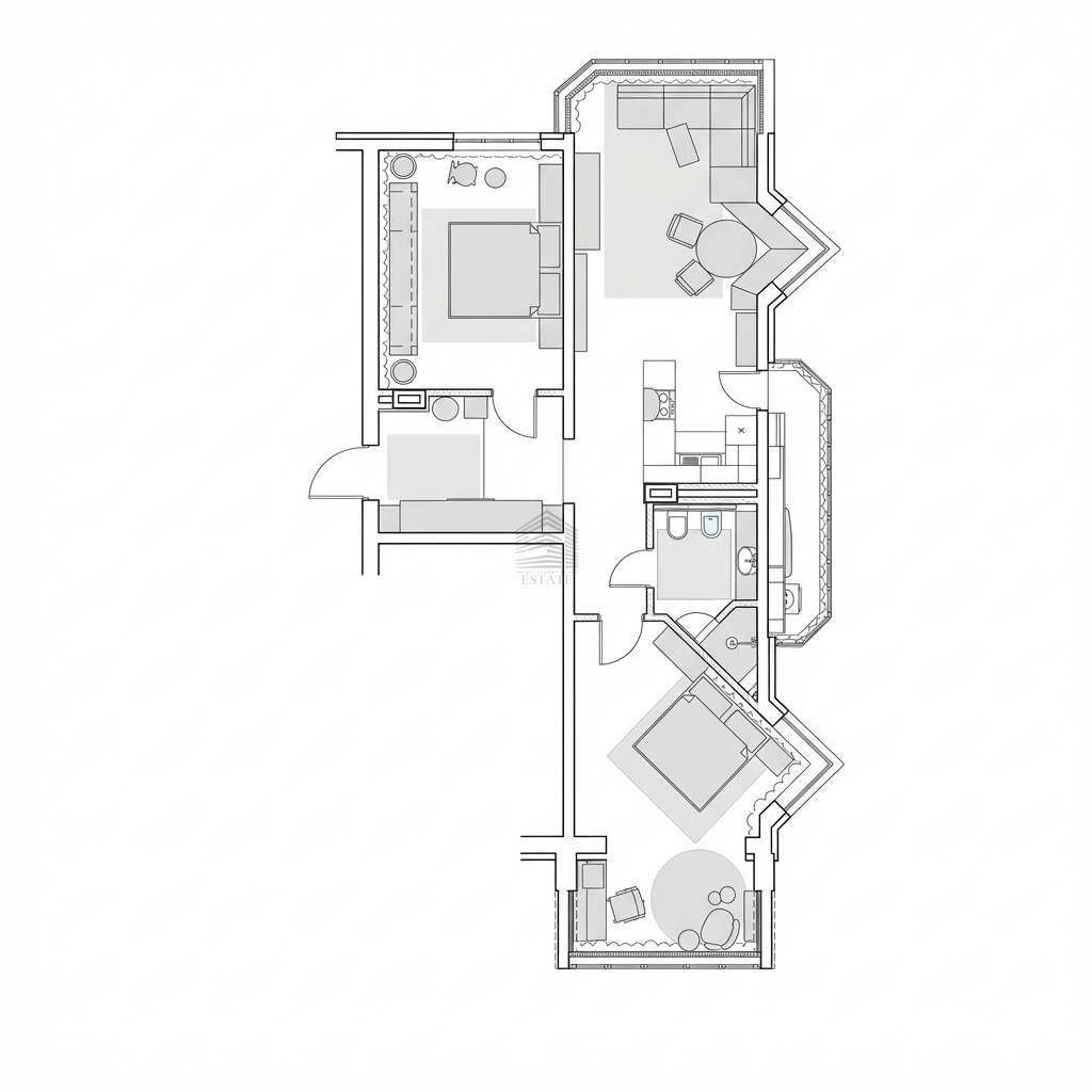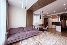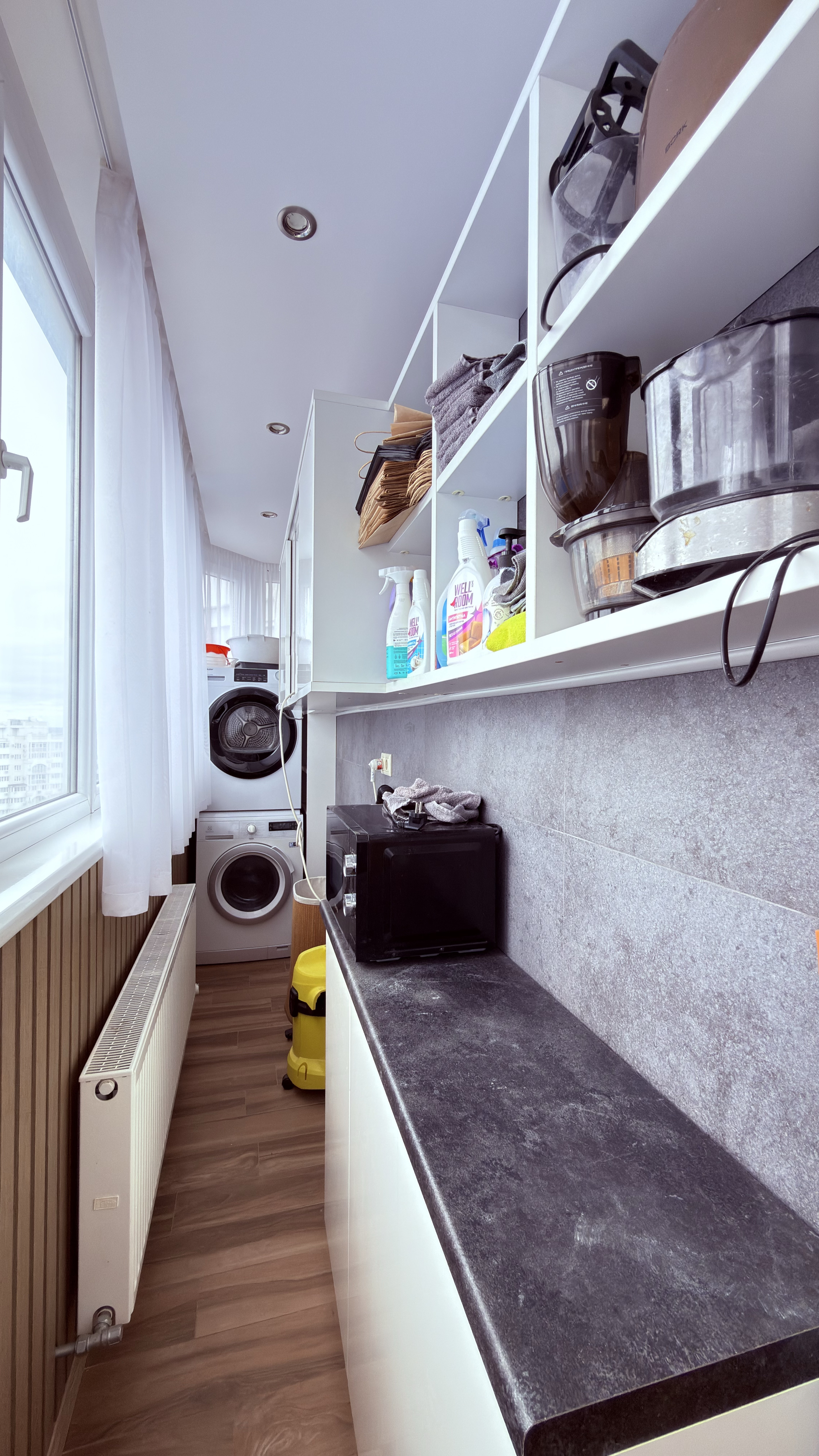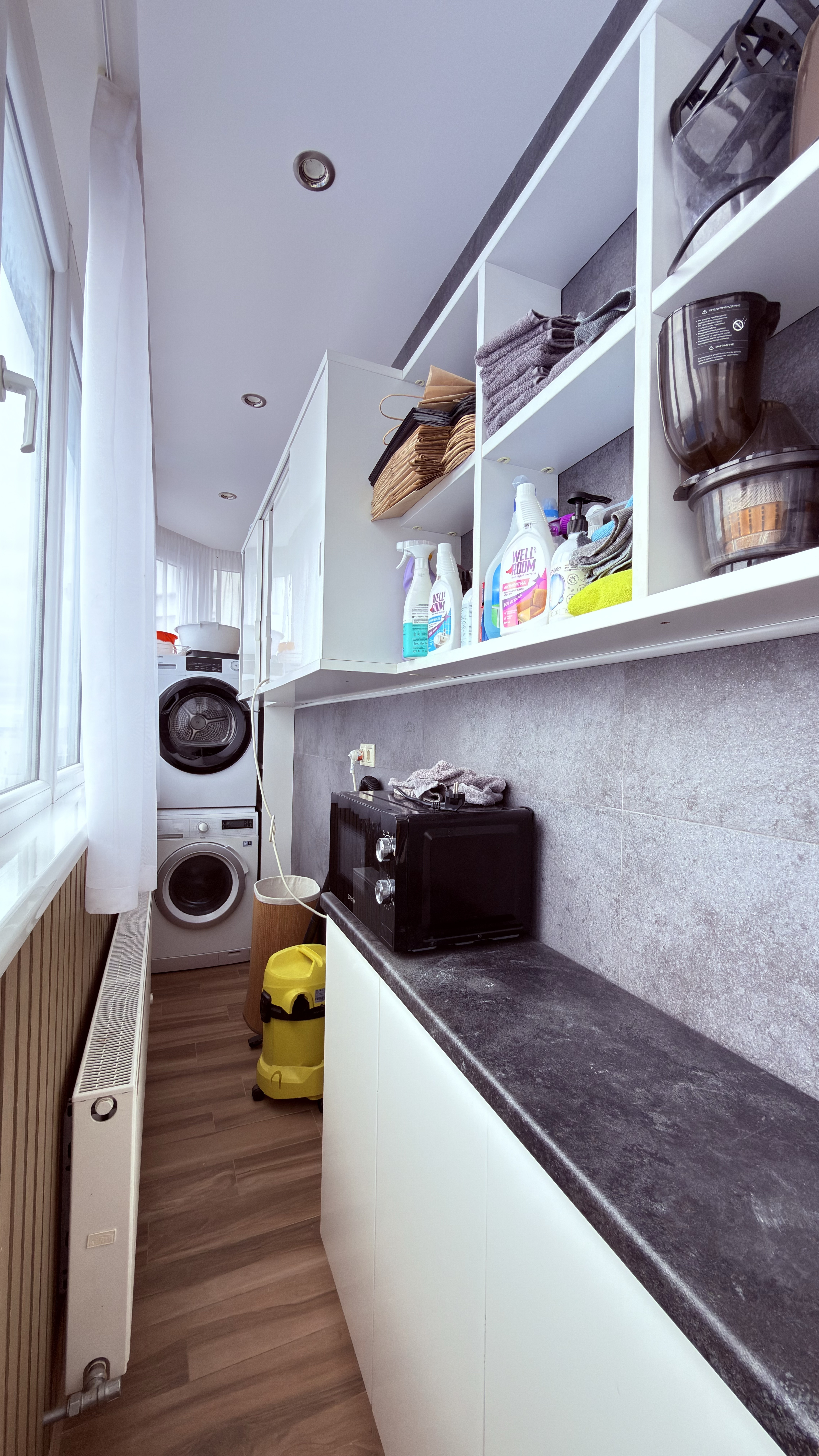 Планировка продумана для комфортной жизни: две отдельные спальни, просторная кухня-гостиная, отдельная оборудованная прачечная, совмещённый санузел с душевой кабиной. Квартира светлая, просторная, с хорошим ремонтом, продаётся с мебелью и техникой. На кухне установлена техника Asko.